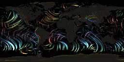 The lines run perpendicular to the direction the swell is moving, just like swell lines in the ocean. The colors vary depending on direction.